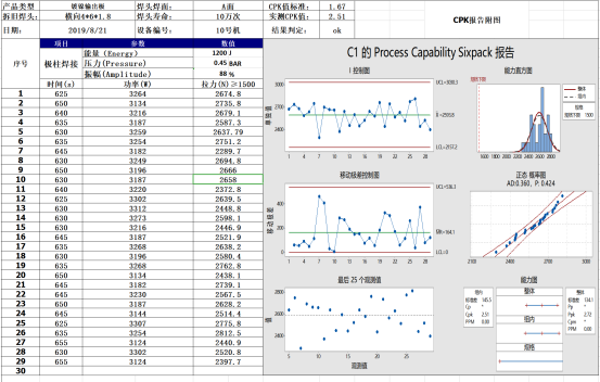其次,評判超聲波產(chǎn)品的穩(wěn)定性。這個可以要求超聲波企業(yè)提供已有案例的穩(wěn)定性文件,例如cmk﹑cpk﹑ppk文件。下圖是我司客戶50平方銅線+端子的文件: